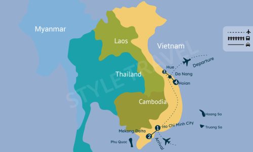 Tour map, brief itinerary and estimated number of days for a popular Vietnam tour packages